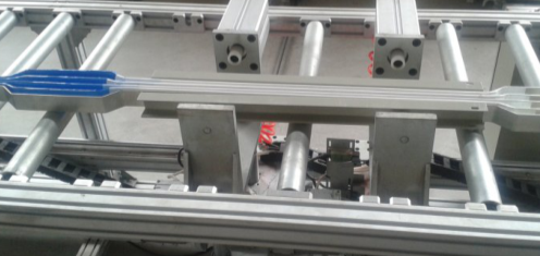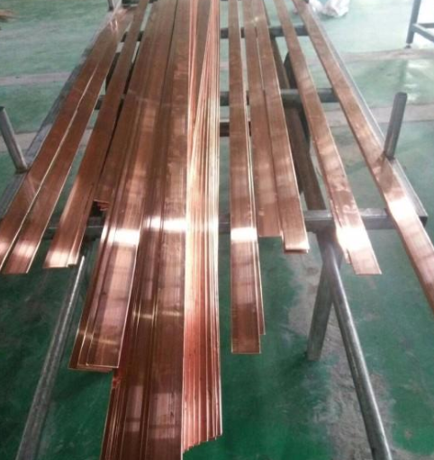如圖是已經(jīng)噴涂完成正在機床上等待最后組裝加工的母線槽的母線銅排。