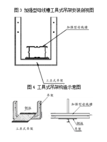 (2)選用的吊架可重復使用的附加有鋼板的吊架起備固定母線槽,加寬了吊架與母線槽的觸摸面積,可增加吊架的設備間隔,減少母線槽接頭數(shù)量,減少資料的用量。