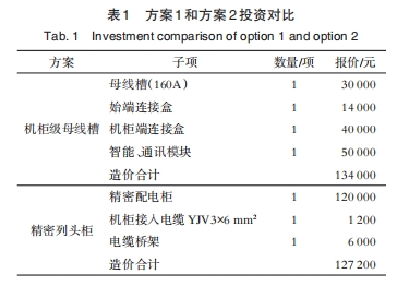 針對方案1和方案2不同機(jī)柜結(jié)束配電方案,兩者的出資造價對比如下,如附表1所示。