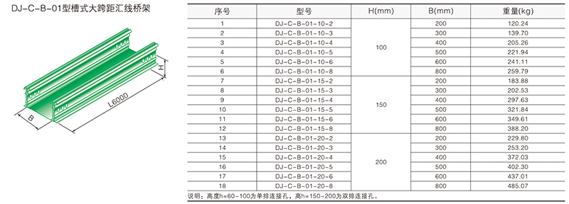 大跨距橋架分梯級(jí)式、槽式、托盤(pán)式三種型號(hào)。A型、B型二種類別,支撐間距為6m,當(dāng)跨距大于6m時(shí)可接受特殊訂貨。