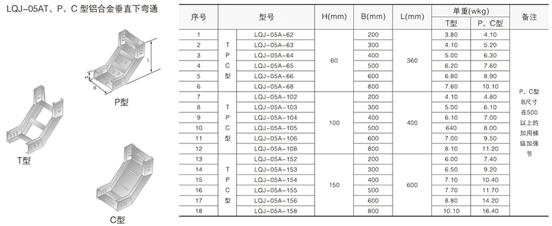 鋁合金電纜橋架在某種結(jié)構(gòu)形式中無其它結(jié)構(gòu)形式中的某-種產(chǎn)品類別,選型可作代用表示。例如:在LQU-CC型槽式鋁合金電纜橋架結(jié)構(gòu)形式中,無鋁合金配線橋架中的LPC-03D, 即表示為LFC-CC-03D。