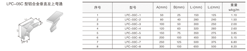 鋁合金電纜橋架在某種結(jié)構(gòu)形式中無其它結(jié)構(gòu)形式中的某一種產(chǎn)品類別,選型可作代用表示。例如:在LQU-CC型槽式鋁合金電纜橋架結(jié)構(gòu)形式中,無鋁合金配線橋架中的LPC-03D,即表示為LFC-CC-03D。